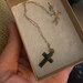 The cross measures about 1/2" across by about 3/4" tall, and the chain end to end is about 16". Weighs 4g.